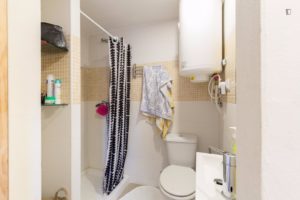 Located on the first floor it has a nice view of the patio and the neighbor’s garden.