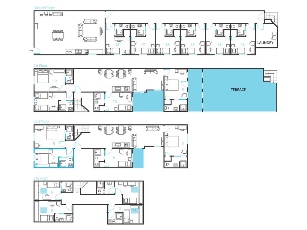 It is located on the ground floor and close to the main social area, laundry room and terrace.