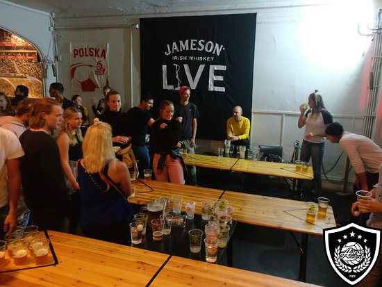 A large sports bar at heart, there’s several screens for watching your favorite sports. The place has scarves from various football clubs hanging on the walls, hockey sticks on display and, of course, foosball and snooker to entertain the crowd.